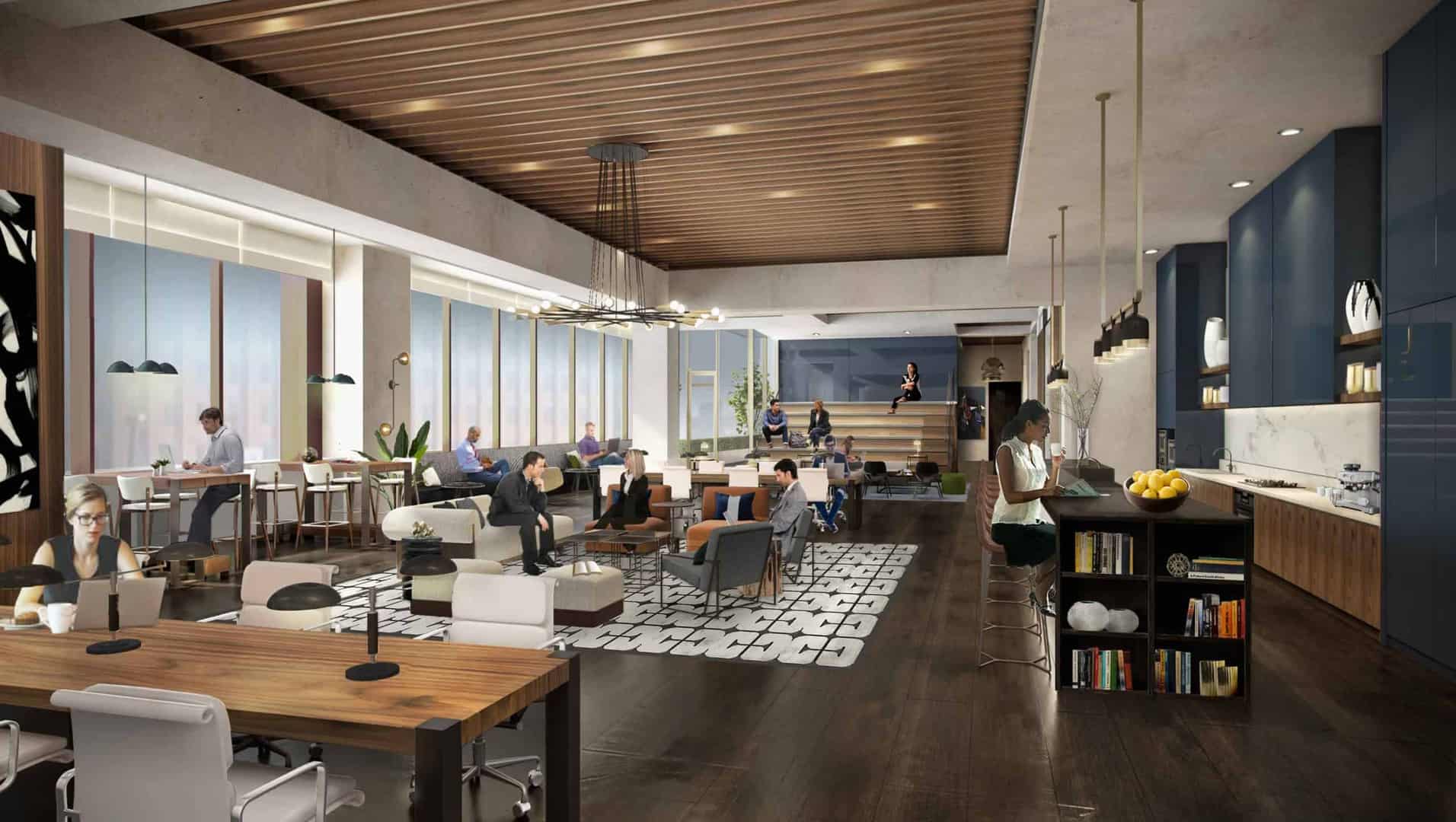Apartment Highlights include custom designed kitchens with Italian cabinetry and Caesarstone countertops and oversized windows with city or courtyard views. The penthouse units offer state-of-the-art thermador kitchen appliances, white oak wood plank flooring, elevated ceilings, and panoramic views​
