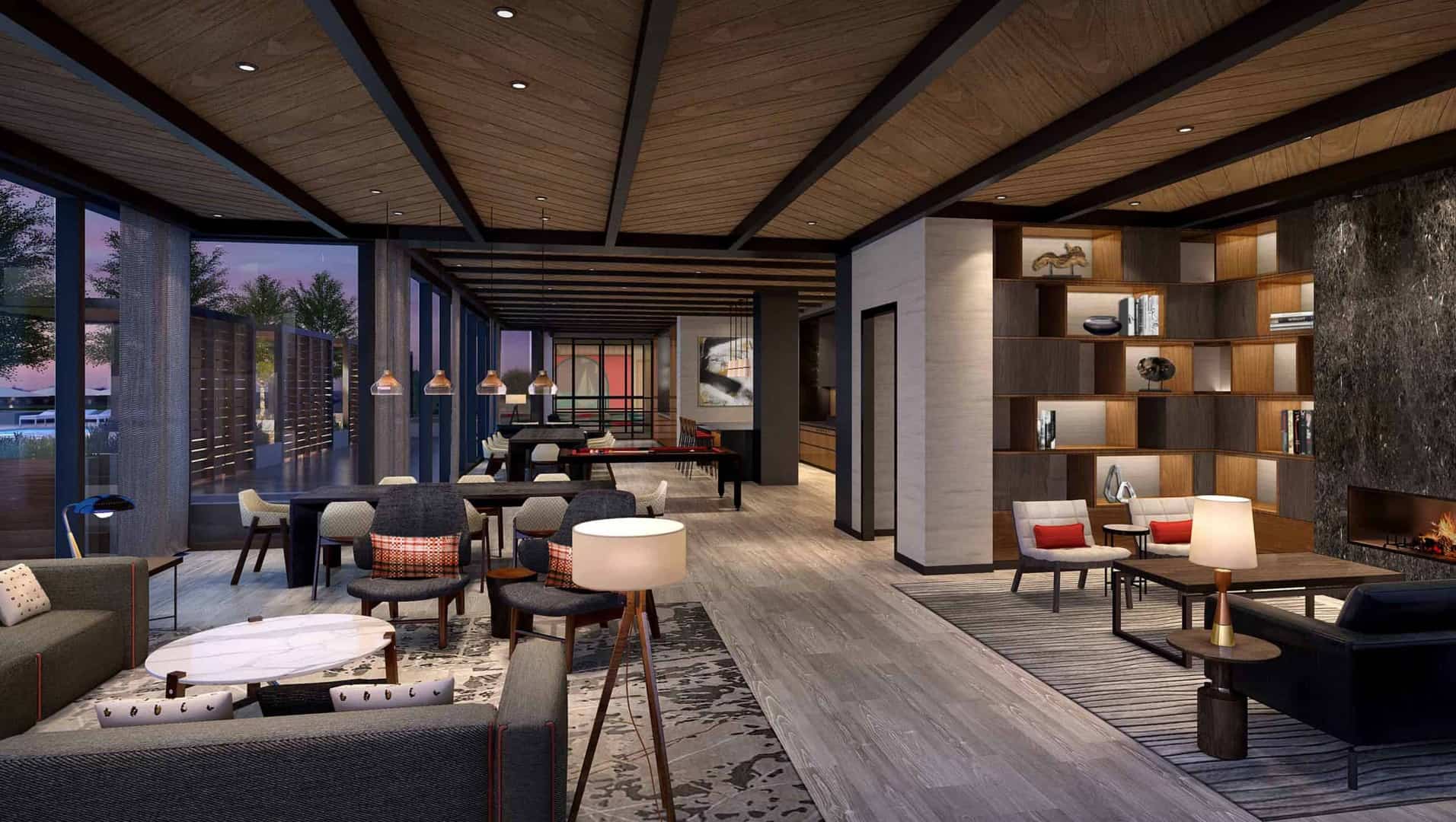 Designed by Kohn Pedersen Fox architects of New York, The Alyx is a contemporary landmark and the impressive stepped tower design takes inspiration from Boston’s Victorian neighborhoods full of brick and brownstone row houses. On the interior, the design team at world-renown Jeffrey Beers International crafted the lobby and amenity spaces to feel like an extension of one’s own living room; warm, inviting, and comfortable. Designed with a sense of community, the amenity experiences encourage residents to gather and socialize.